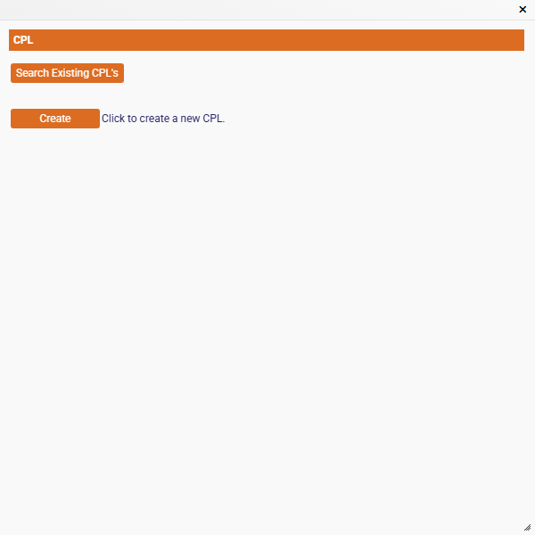 This will launch the CPL setup screen, there are several options available; however, most of the time, you will just click the "Issue" button without making changes. Review the fields below to understand when they should be changed.