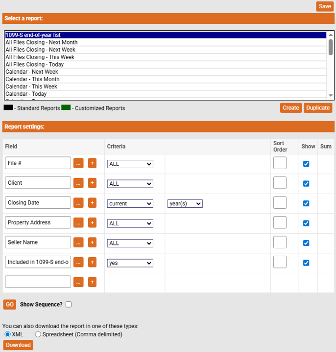 This launches the screen where informiaton is reviewed prior to exporting to the IRS. This relates directly to the 1099S process.